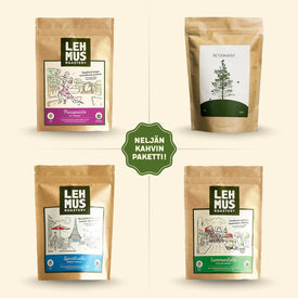 Lehmus Roastery is a coffee roastery established in 2016. Our goal is to offer high-quality coffee for every taste. You can order each of our coffee varieties either as filter coffee or as whole beans in packages ranging from 220 g to 1000 g. Alternatively, you can easily explore all our varieties through Maistelupakki, our very own tasting pack.